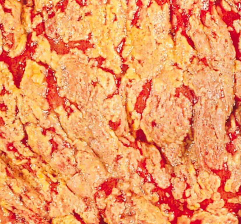 • 내시경으로 관찰했을 때 염증에 의해 생긴 yellow-white 플라크가 점막 위에 또다른 막처럼 생긴 것을 확인할 수 있다. (사진 참조)