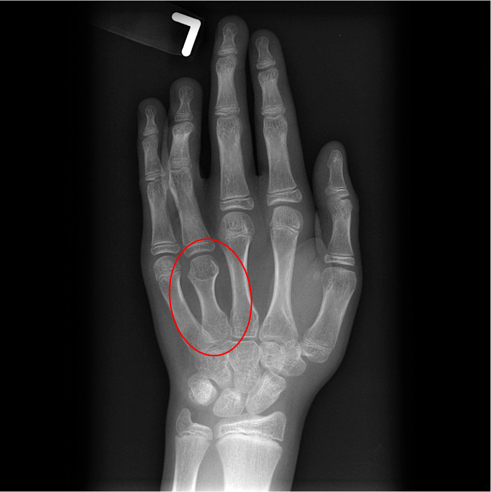 Img | Wrist radiograph: Short 4th metacarpal bone |