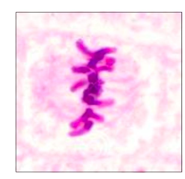 • 중기(metaphase): 염색체가 중앙(적도판)에 배열되고 핵막이 소실된다.