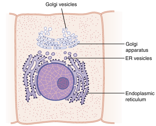 • 골지체는 작은 구멍들이 있는 막으로 둘러쌓인 여러 납작한 sac들로 구성되어 있는 세포소기관으로, rER에서 합성된 단백질은 골지체의 cis face(forming face)로 들어가 post translational modification이 일어난 후 최종적으로 해당 단백질이 분포해야 하는 위치로 분류되어 trans face(maturing face)로 나와 행선지로 보내준다.