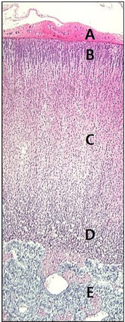 • B: zona glomerulosa (mineralocorticoid 생성 – 예: aldosterone)