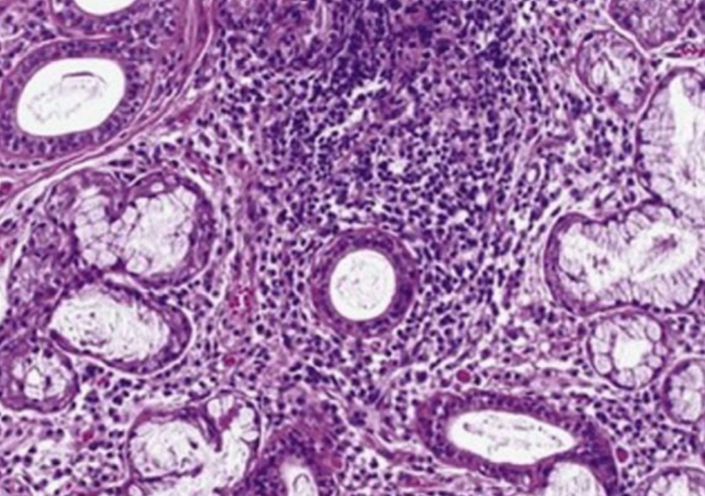 • 쇼그렌 증후근은 침샘, 눈물샘 등을 비롯한 외분비샘에 림프구가 침윤해 만성 염증을 초래하는 질환으로, 환자는 침과 눈물이 감소되어 건조증상을 호소한다. 이 외로는 소화액 분비량의 감소로 인한 위염, 관절염, 광과민성과 같은 피부 증상이 나타날 수 있다.