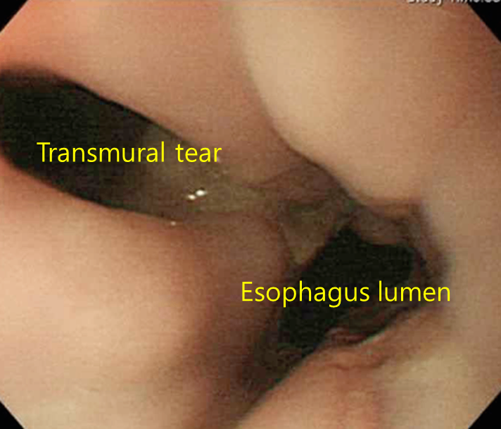 Etc | EGD: Esophageal wall defect, suggesting esophageal rupture |