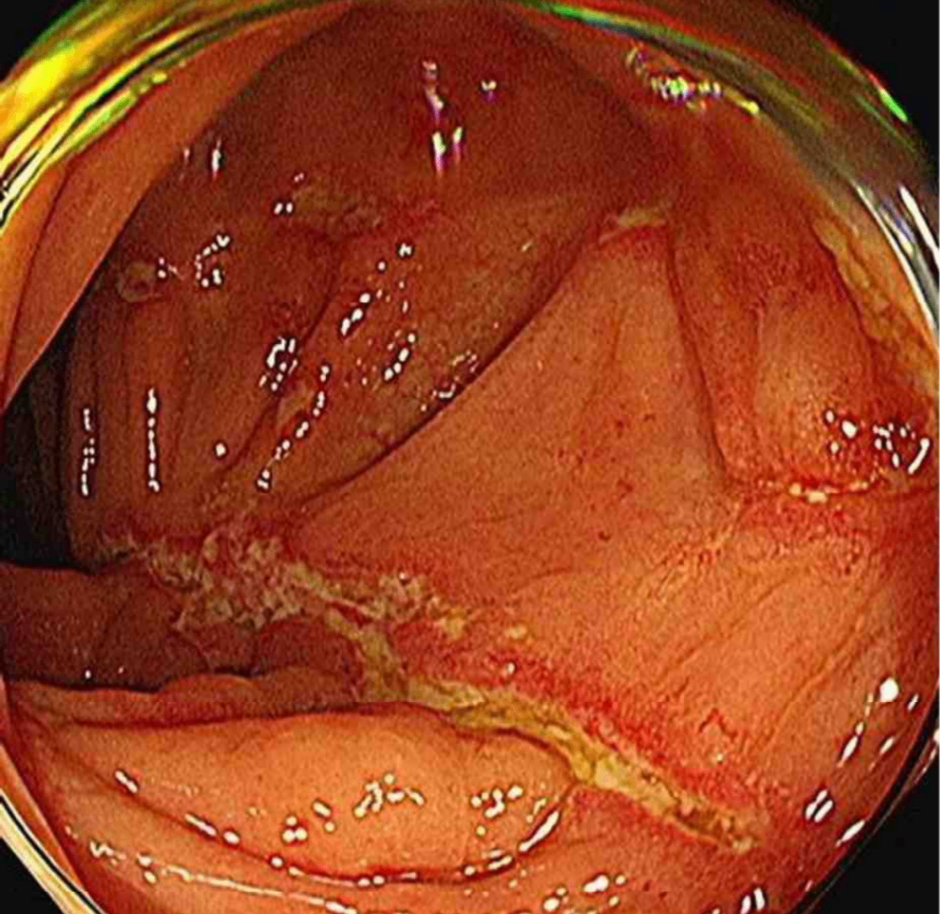 • 궤양결장염: 대장내시경상 diffuse erythema, edema, friability 및 vascular pattern 감소 소견이 주로 관찰된다. 본 증례의 내시경은 크론병에 더 부합한다.