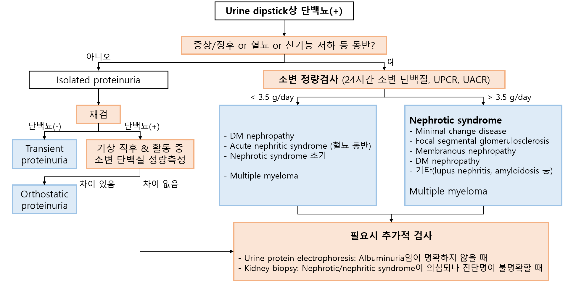 • 당뇨콩팥병(diabetic nephropathy): Diabetic nephropathy에서는 소변으로 배출되는 단백질의 대부분이 albumin으로 본 환자에서 나타나는 dipstick과 정량검사 사이의 불일치를 설명할 수 없다.