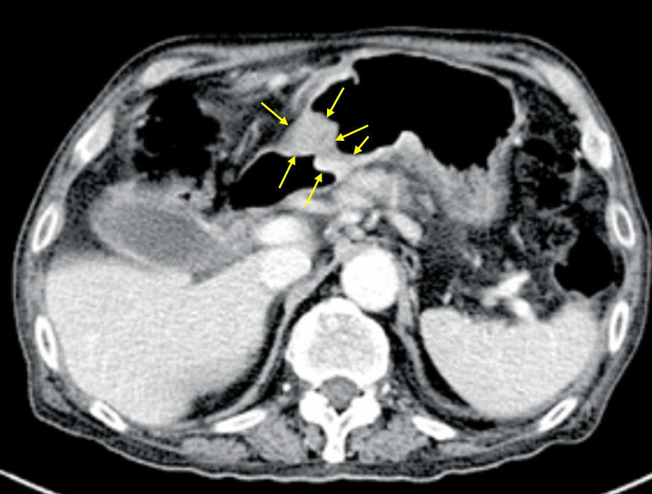 임상양상 | • 체중감소, 복통, 속쓰림, 토혈 • 구토, 복부팽만 등 • Lt. supraclavicular LN 촉진, 복수 등 → 전이 시사 |