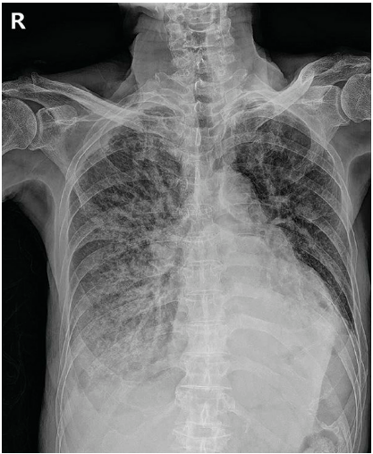 Img | CXR: diffuse opacities, RLLF |