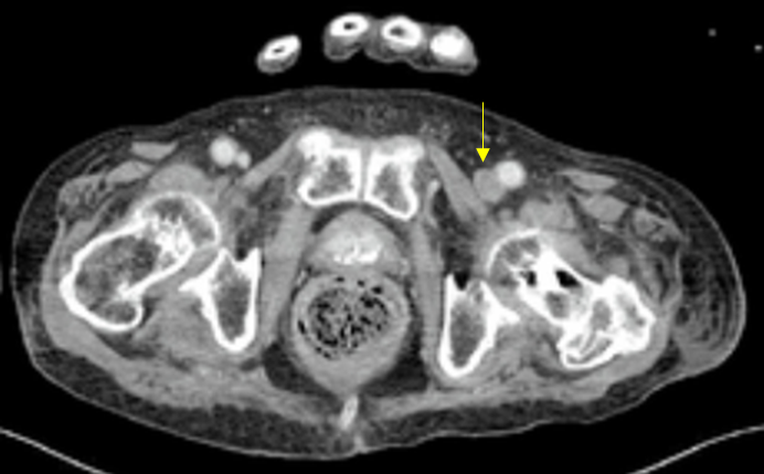• 실제로 APCT에서 왼쪽 다리에 정맥 혈전이 발견된다(오른쪽 정맥에 비해 low attenuation을 보이며 팽창해있다).