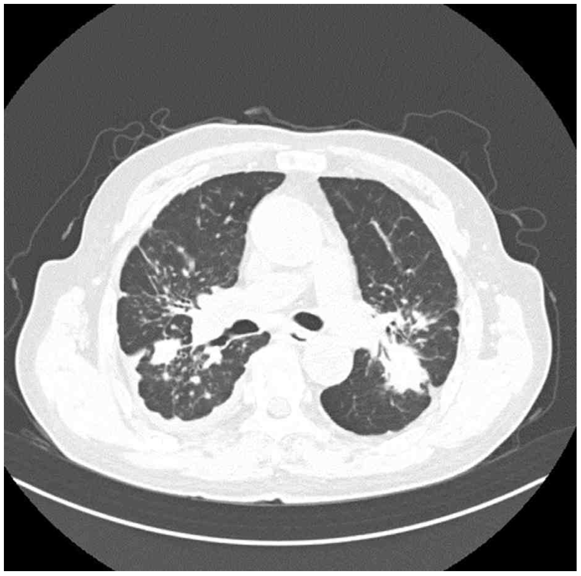 Img | CXR: Bilateral patchy consolidation CT: Multiple nodules, masses, GGO |