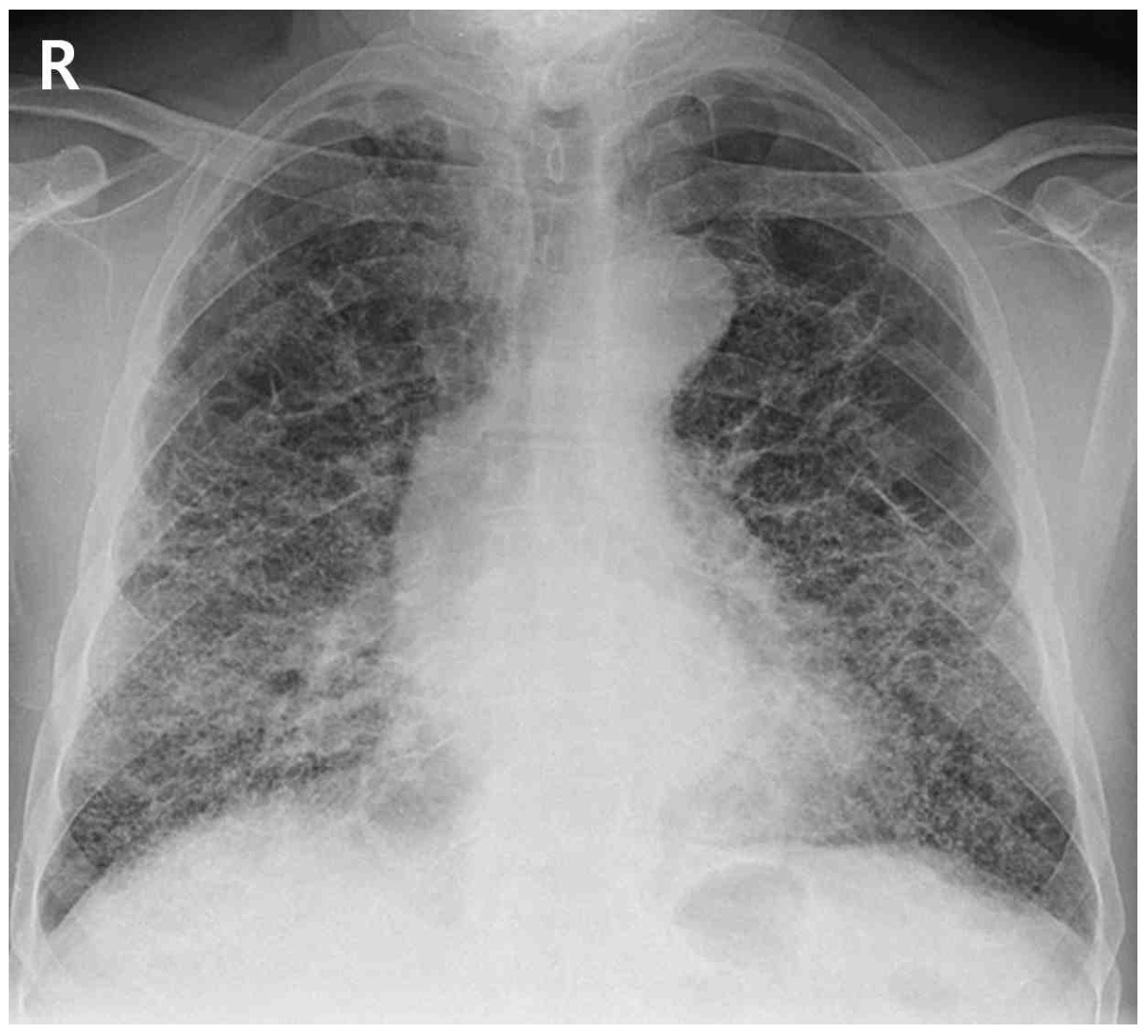 검사소견 | • CXR: Reticular pattern • PFT: Restrictive pattern |