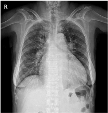• 공기가슴증: 폐와 흉벽 사이 공간인 흉강에 공기가 찬 질환으로 CXR 상 pleural line이 보이고 pleural line 바깥쪽으로 vascular marking이 소실된다.