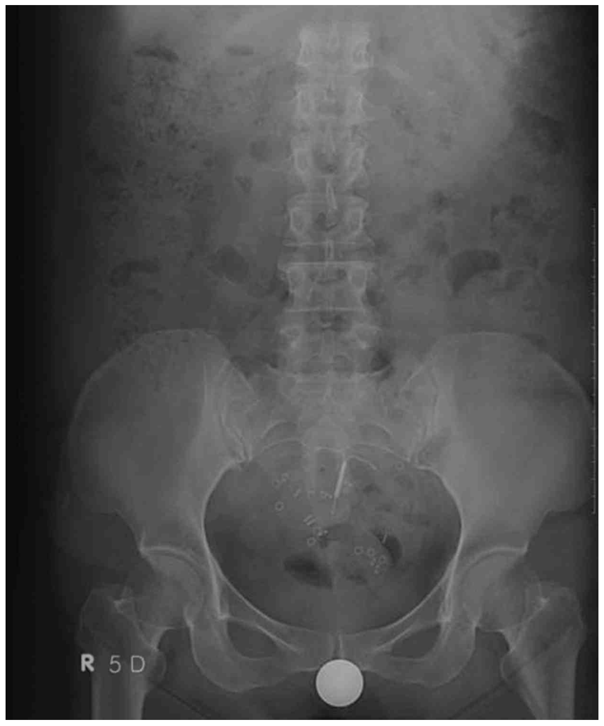 • 대장통과시간 검사 결과 radiopaque한 표지자들이 직장/항문 주위에서 집중적으로 관찰되는데, 이는 골반저 기능장애를 시사하는 소견이다.