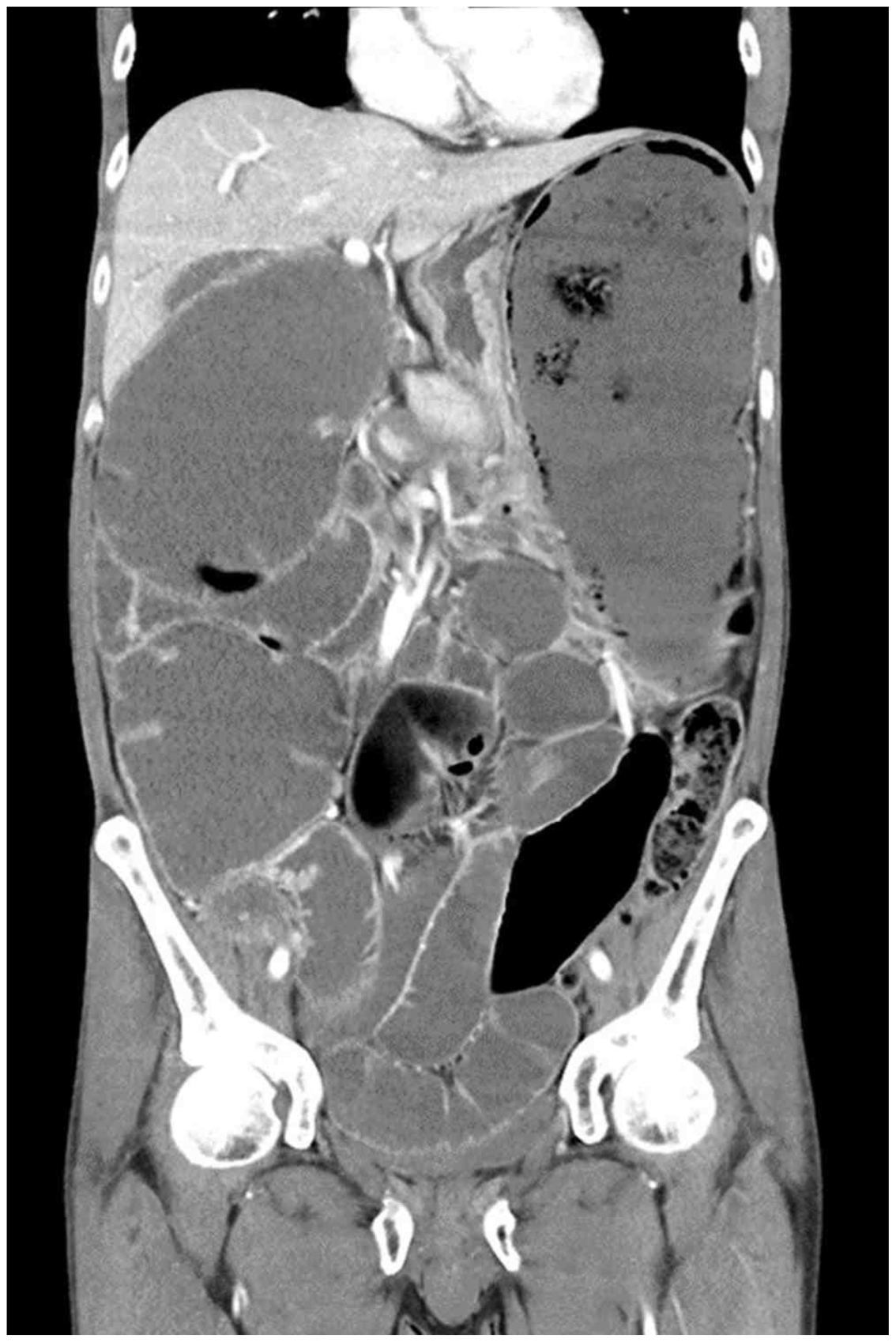 • 독성거대결장증: 염증성 장질환 또는 감염성 장질환의 합병증으로 발생할 수 있다. 본 증례는 염증성 장질환의 과거력이 없으며 CT 소견 상 haustra의 소실도 보이지 않으므로 독성거대결장증에 부합하지 않는다.