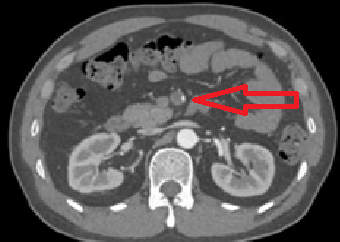 • 급성적인 복통 및 혈변을 호소하는 AF 환자에게서 복부 CT상 상장간동맥의 폐쇄가 확인되므로 상장간동맥색전(SMA embolism)으로 진단한다.