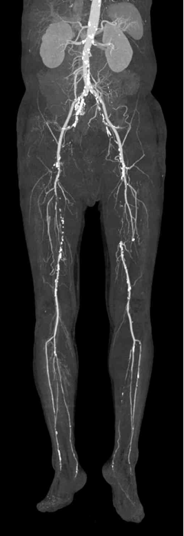 • 해당 증례에서는 CT 혈관조영술을 시행하였으며 bilateral superficial femoral a. occlusion이 저명하게 관찰된다.