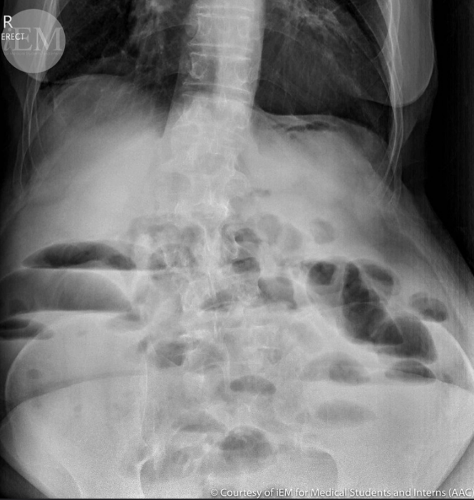 • 복부 수술력이 있는 환자가 복통/구토를 주소로 내원, AXR상 multiple air-fluid level이 관찰되므로 기계적 장폐색이 의심된다.