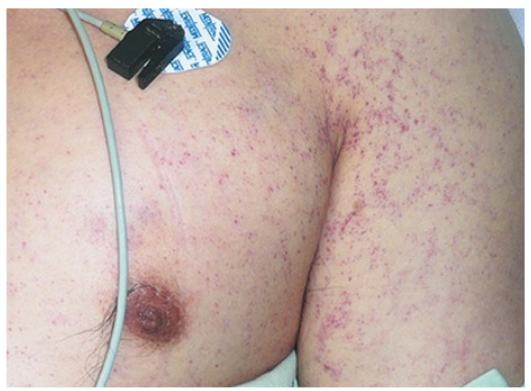 • 파종성혈관내응고: 반상출혈, 혈소판 감소를 보일 수 있으나 PT, aPTT 증가 소견이 중요하다.