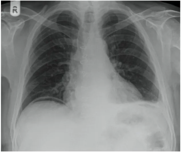 • 가슴 X-선에서 복강 내 free air가 관찰되는데, 심한 복통이 동반될 경우 이는 위장관 천공을 시사한다.