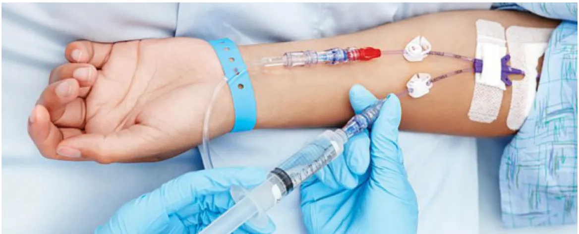 • 말초 혈관 노출이 어려운 환자에게 반복적인 말초혈관 천자에 의한 정맥염의 위험을 줄이고, 안정적인 수액로를 확보해주며, 바늘을 찌르지 않고 혈액채취가 가능하다는 장점이 있다.