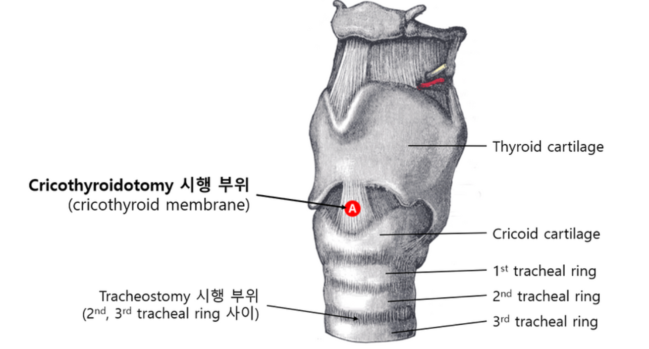 • 윤상갑상연골절개술의 위치는 다음과 같다.