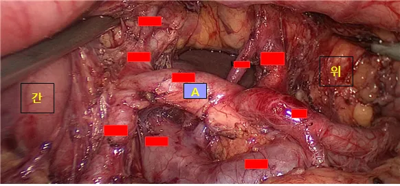 - Rt. gastric a. : lesser curvature 따라 달리다 가 Lt. gastic a.와 만난다.