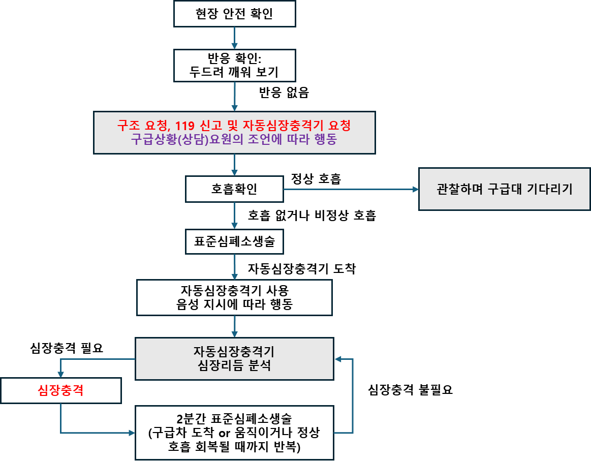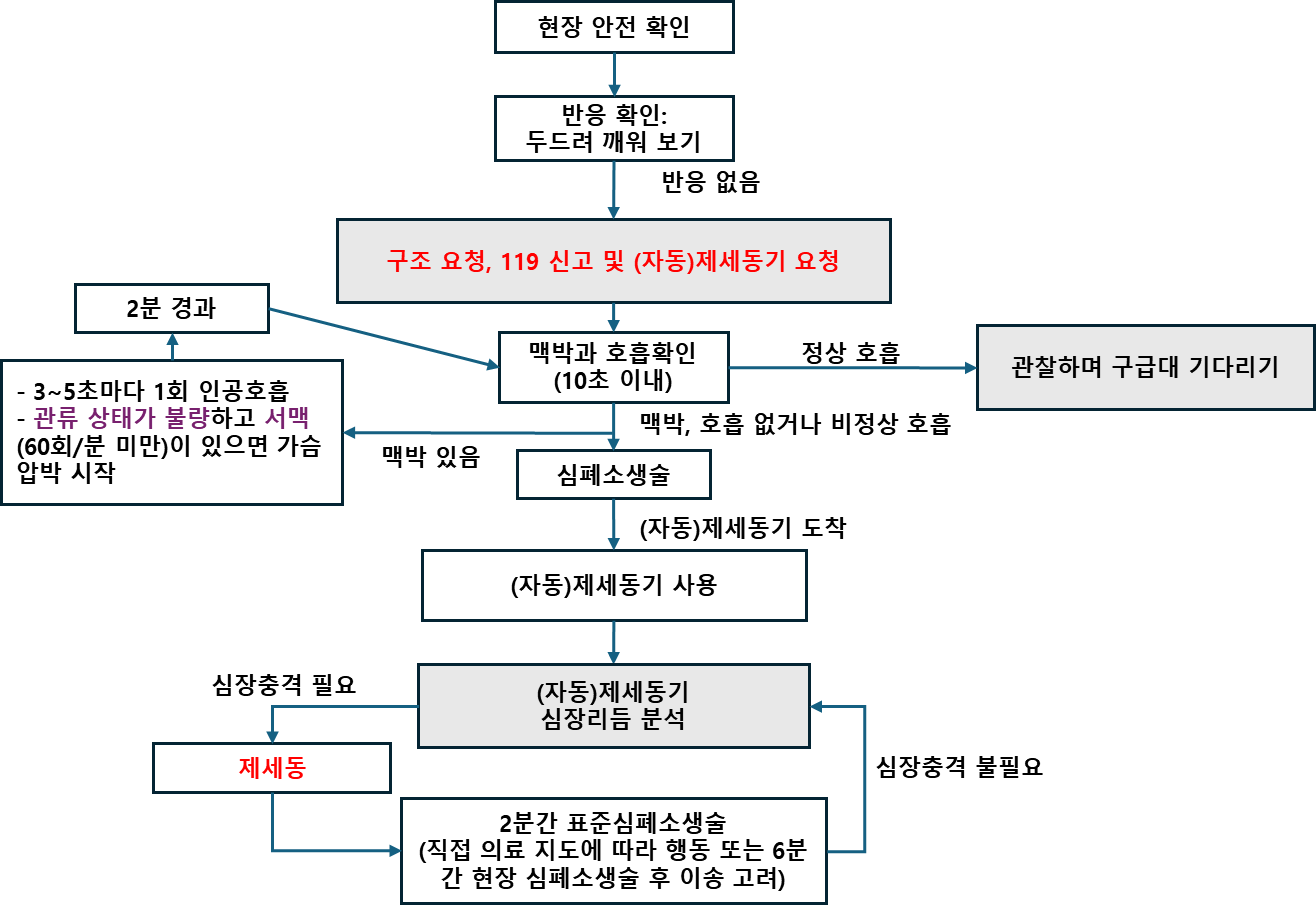 • 소아 심폐소생술 알고리즘 - 일반인 구조자에 의한 소아 기본심폐소생술 순서