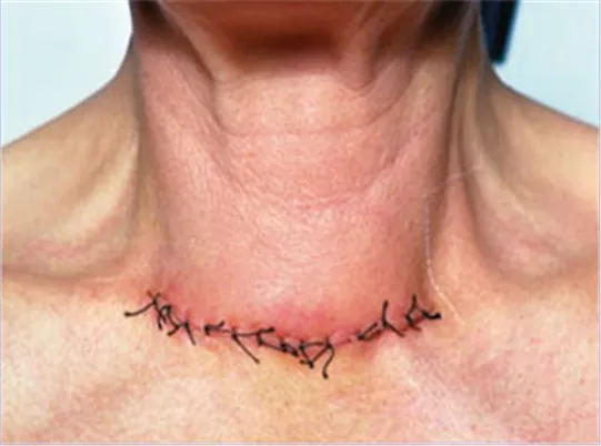 혈종 및 출혈 | 지혈이 잘 되지 않아 목 공간에 혈액이 쌓이게 되어 기도를 압박해 질식할 위험이 있다. | 호흡 곤란, 목 부위 부기, 질식 가능성. | 혈종이 관찰되면 즉시 상처 부위를 재개방. | |