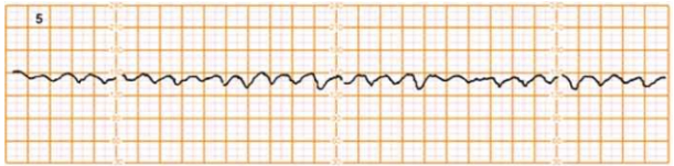 임신 33주에 실시한 태아 심박동수 모니터링 결과이다. 가장 의심되는 태아 상태는?