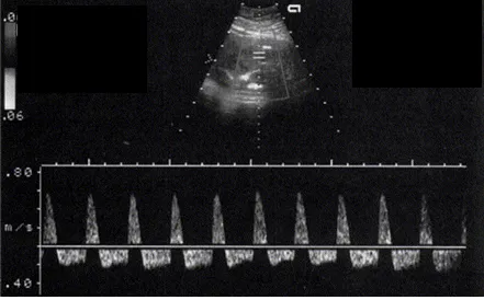 • 태동 감소로 내원한 산모에서 예측태아몸무게<10백분위가 확인되므로 FGR이 있다고 추정할 수 있으며, umbilical US상 reversed end-diastolic flow가 관찰된다. 이는 placental insufficiency를 의미한다.