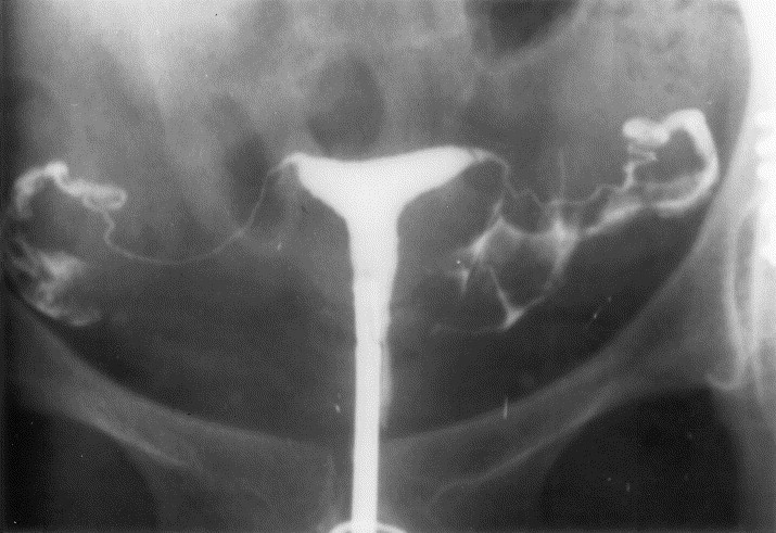 산과력 0-0-0-0인 32세 여성이 임신을 원하나 임신이 되지 않아 병원을 찾았다. 부부는 지난 2년 동안 임신을 시도해왔으나 성공하지 못했다고 한다. 여성의 최종월경시작일 4일차에 시행한 혈액검사, 배우자(남편)의 정액검사 결과와 자궁난관조영술 결과이다. 임신을 위한 적절한 처치는?