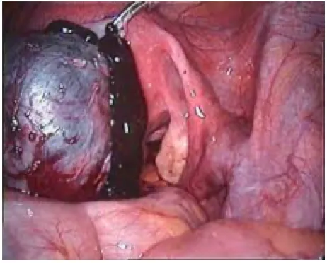 • 자궁내막증, 그 중 endometrioma의 전형적 병력과 사진이다. 복강경 검사 상 chocolate cyst가 관찰된다.