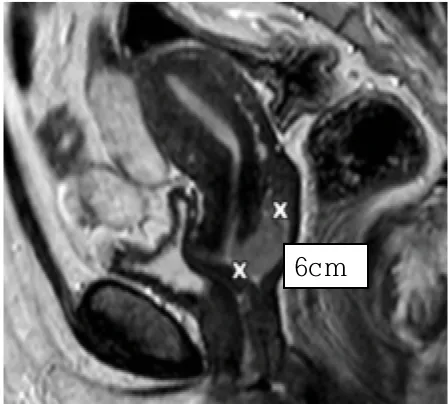 • 자궁경부암이 parametrium을 침범했으며 그 이상의 침범은 확인되지 않으므로 stage IIB이다.