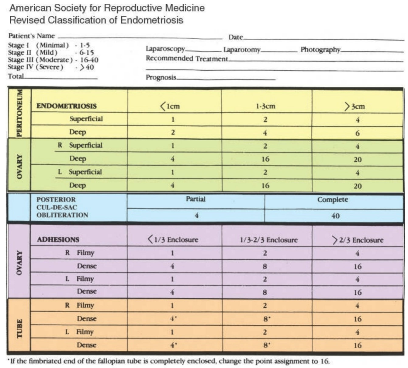 → 모든 항목을 외울 수 없다. endometrioma의 크기가 크거나 adhesion이 심할수록 stage가 높아진다고 알아두면 풀이에 조금 도움이 된다.