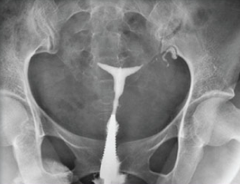 • 자궁난관조영술에서 양쪽 난관의 완전폐쇄 소견이 보인다.