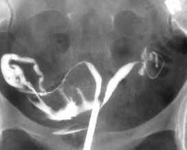 32세 여성이 난임으로 내원하였다. 과거에 세 번의 자연유산이 있었다. 남편의 정액 검사 결과는 정상이었다. 골반 MRI 및 자궁나팔관조영 검사 결과이다. 치료는?
