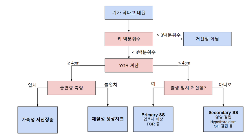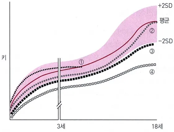 • 현재 성장속도는 정상이므로 호르몬 결핍, 질병 등에 의한 성장 장애를 배제할 수 있다.