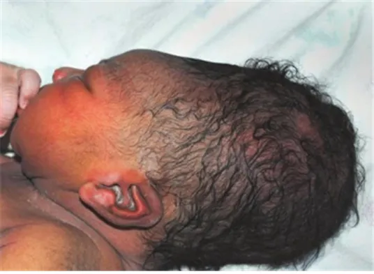 • 두혈종: 봉합선을 넘지 않는 부종이 특징이다. 현재 봉합선을 넘은 경계가 불명확한 부종이 보이므로 배제 가능하다.