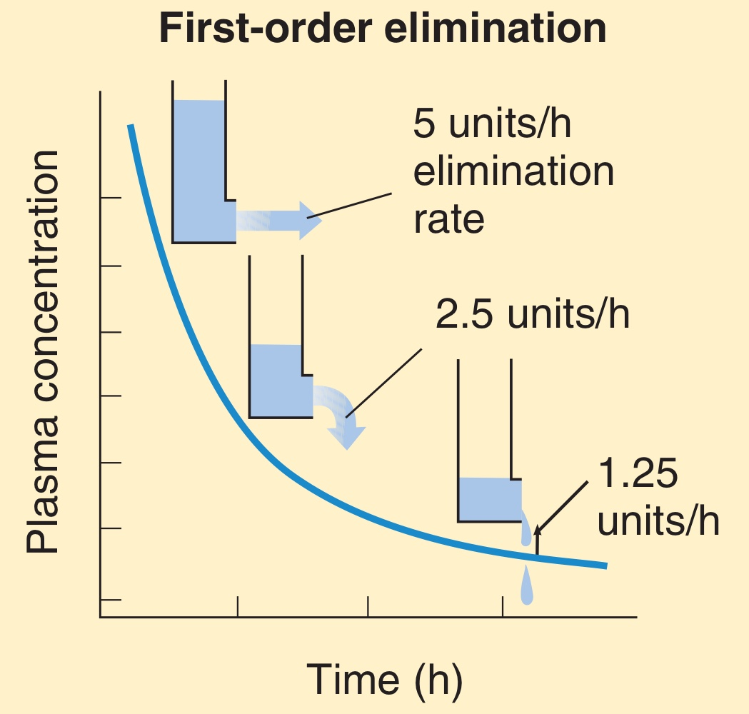 • 주어진 표에서 반감기가 약물의 농도에 관련 없이 1시간으로 일정하므로, 1차 약동학을 따르고 있음을 확인할 수 있다.