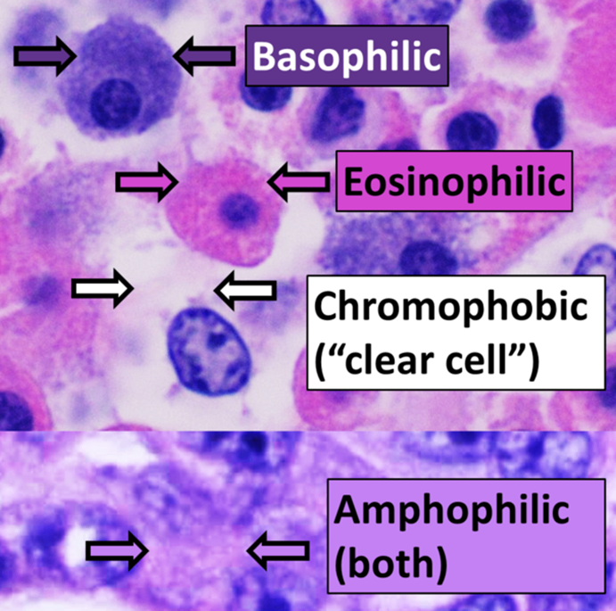 Eosinophilic, basophilic, chromophobic and amphophilic staining, Wikipedia (Creative Commons License)