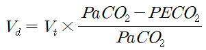 • 여기서 Vd는 무용공간(Dead space), Vt는 일회호흡량(Tidal volume), PaCO2는 동맥혈 CO2 분압, PECO2는 호기 가스의 CO2 분압을 의미한다.