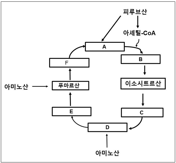 시트르산 회로의 중간산물은 여러 가지 생합성에 필요한 전구물질을 제공해 주므로 이러한 전구물질을 합성하는 반응이 필요하다. 이 반응을 보충반응(anaplerotic reaction)이라 하는데 그림의 A를 보충하는 반응을 촉매하는 효소는?