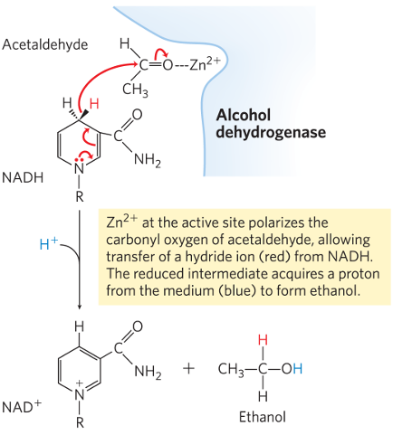 • 알코올은 알데하이드, 카복실산을 거쳐 산화되어 해독되고, 그 과정에서 NAD+가 NADH로 환원된다.