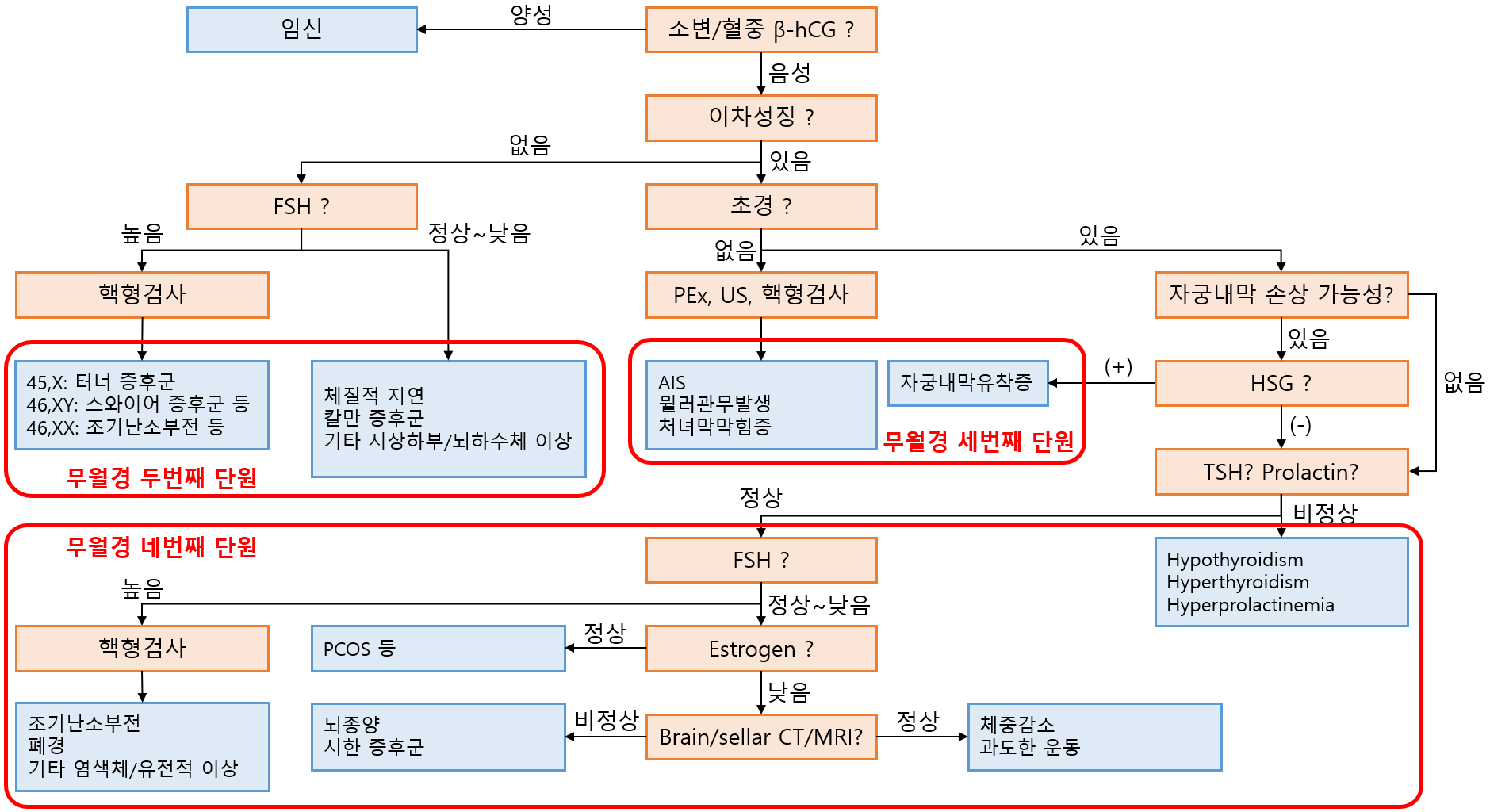 • 무월경(특히 이차성) 환자에게 가장 먼저 시행
