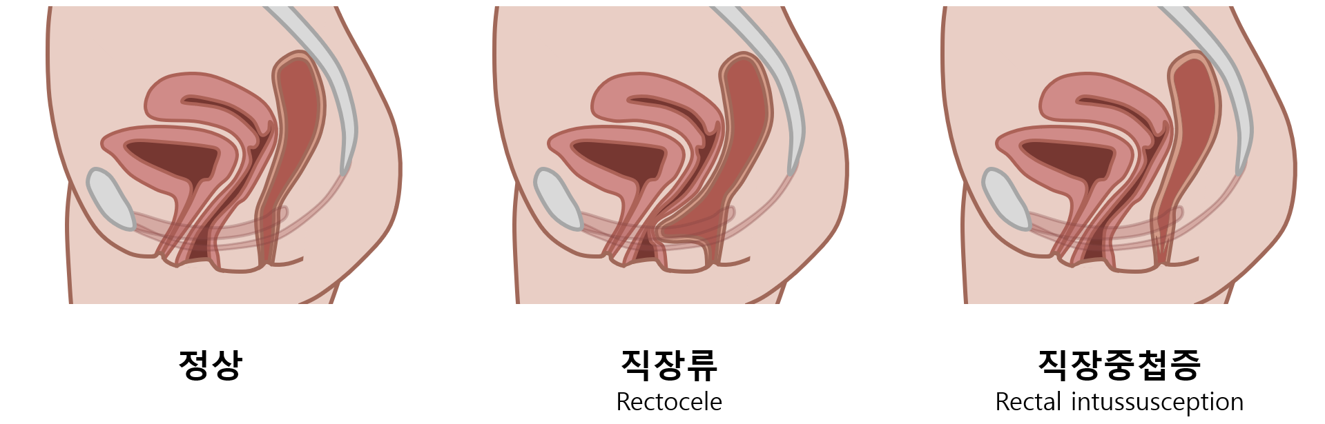• 질의 후벽이 약해지며 직장의 일부가 질 쪽으로 함입되어 들어감