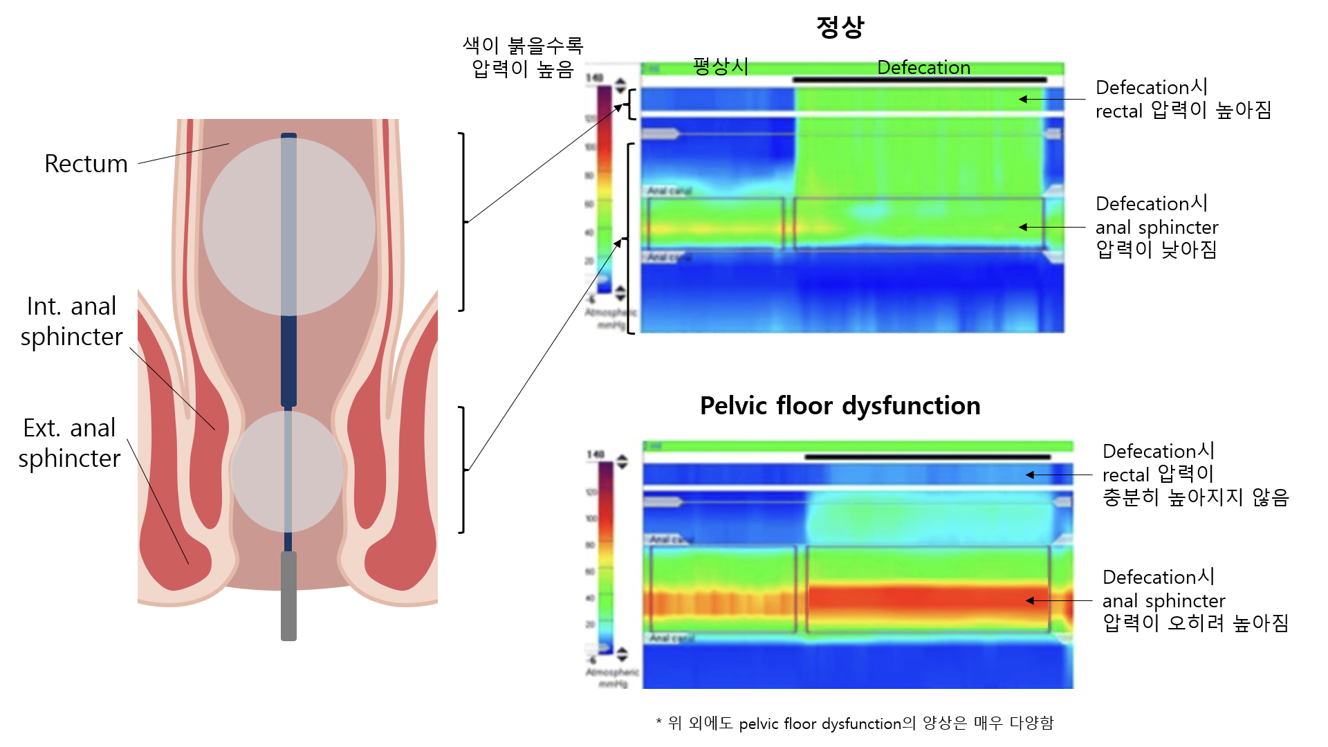 ③ 해석: > 80 mmHg일 경우 anismus로 진단 / 나머지는 그림 참고