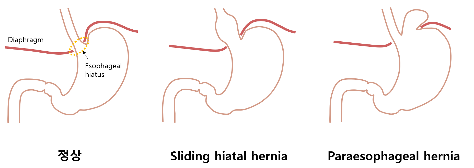 (2) 식도주위탈장(paraesophageal hernia): 이외의 부위(fundus, colon 등)가 미끄러져 올라감