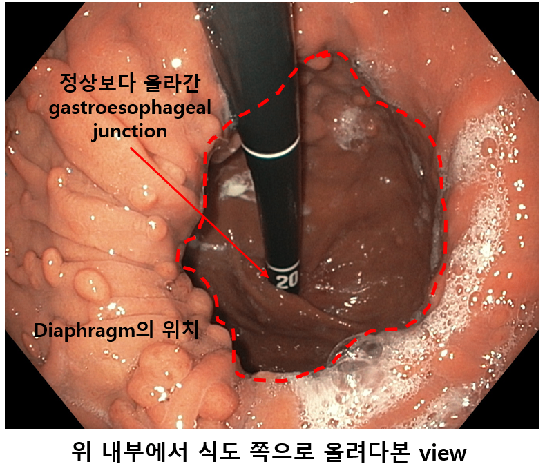 (1) EGD: GE junction이 diaphragm보다 같은 level이나 아래 있지 않고, 오히려 위로 올라가 있음
