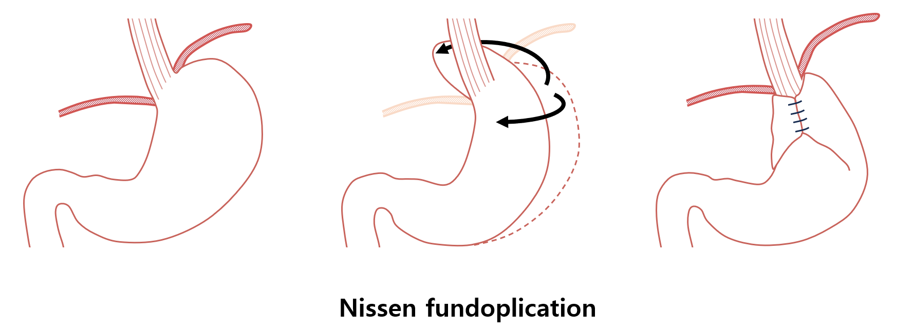 (3) 수술: 복강경 식도열공 복원술 + 위저부주름술(fundoplication)