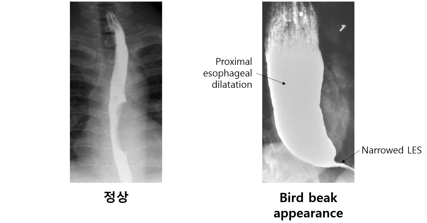 * 단, 이는 식도이완불능증의 일부 subtype에서도 나타날 수 있다.