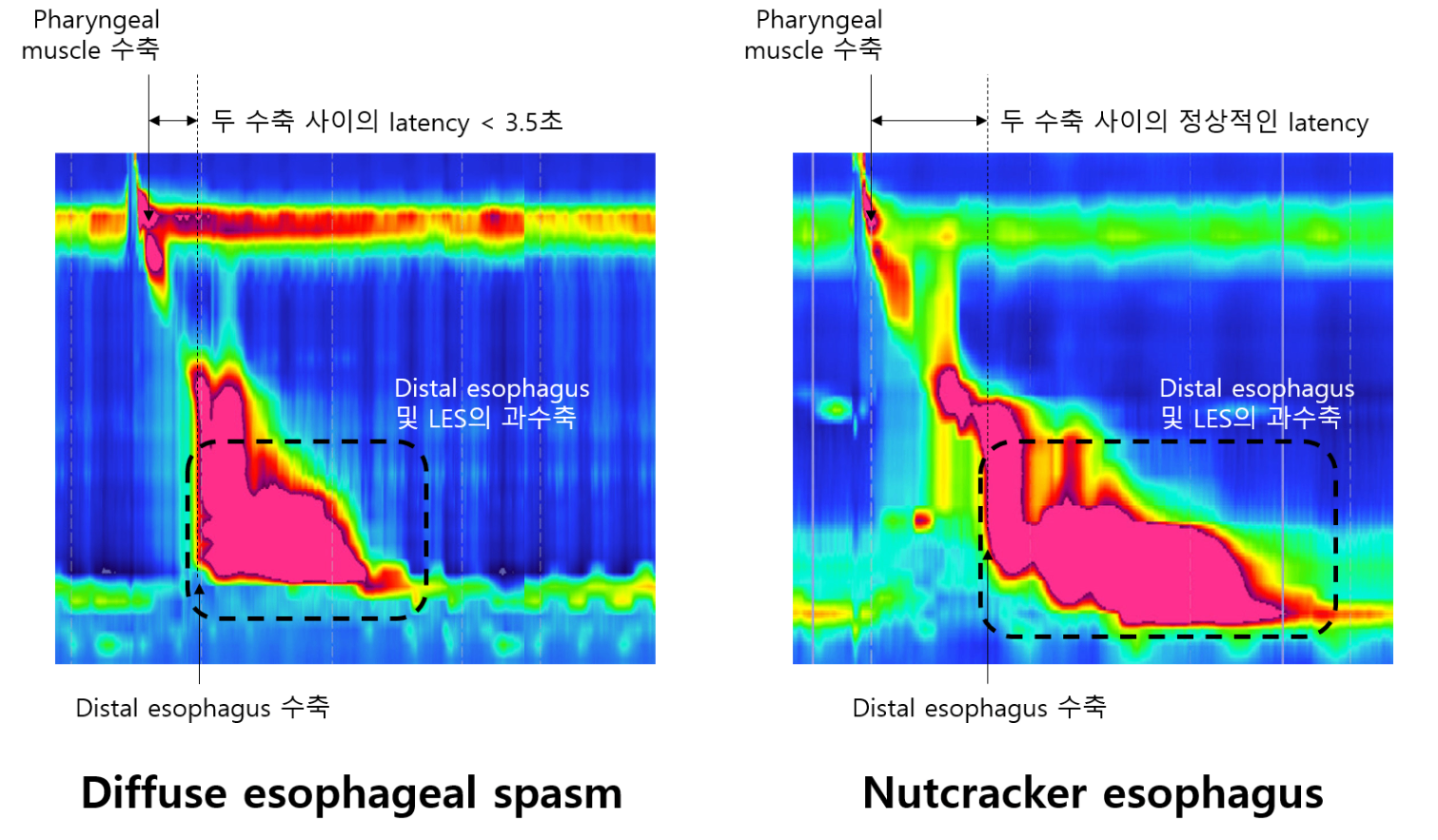 1) Pharyngeal constriction 이후 distal esophagus가 너무 빨리 수축하는 질환